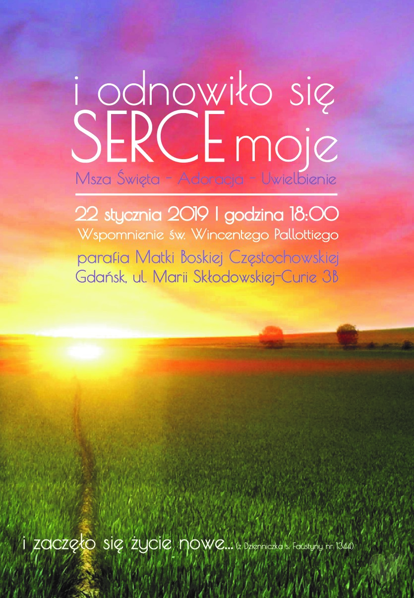 które rozpocznie się Mszą Św. odpustową we wspomnienie Św. Wincentego Pallottiego tj. 22.01.2019 o godz. 18:00 w kościele p.w. MB Czestochowskiej w Gańsku-Wrzeszczu (Aniołki), ul. Marii Skłodowskiej-Curie 3b. Po Mszy Św. odbędzie się również Adoracja oraz Uwielbienie.